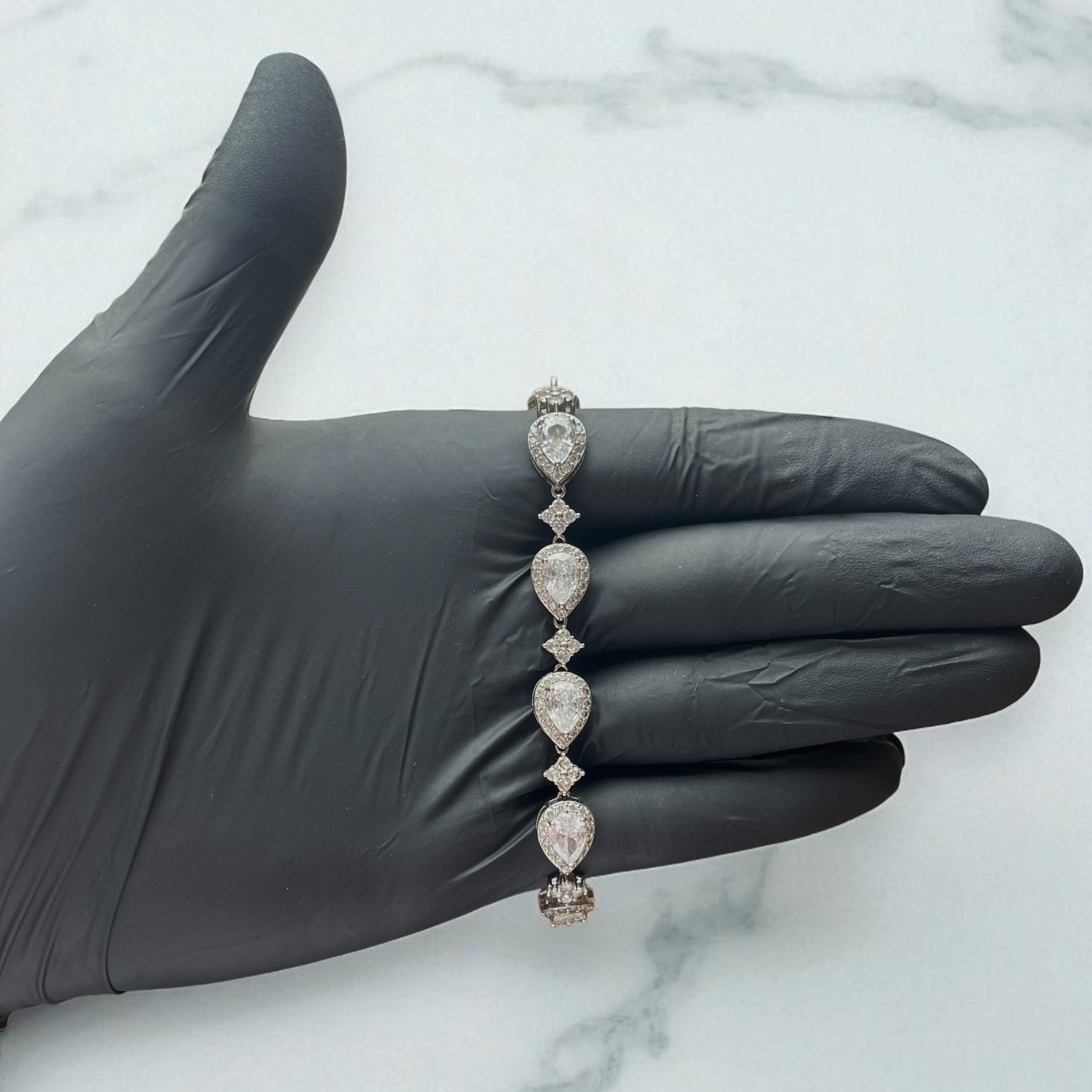 Materiales de la pulsera de plata: cobre bañado en plata y CZ AAA